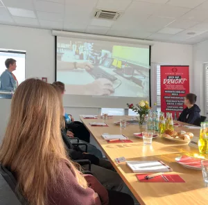 Beim anschließenden Betriebsrundgang gab es einen Blick hinter die Kulissen – dort konnte an den riesigen Maschinen bestaunt werden, wie u.a. der heute erlernte Siebdruck maschinell funktioniert. Nach einer gemeinsamen Mittagspause 🍕 konnten alle in ihre Wunschabteilung hinein schnuppern und wurden dabei von unseren Ausbildungsbotschaftern Linus und René begleitet.
